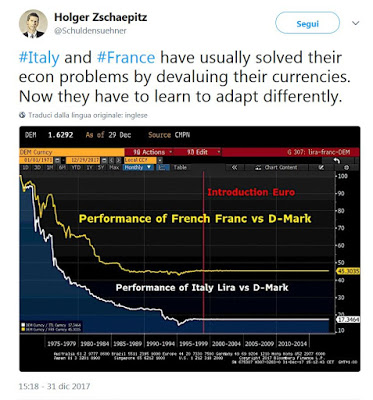 “Italia e Francia erano solite risolvere i loro problemi svalutando. Ora dovranno imparare a fare diversamente”.