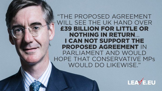 In una lettera ha esposto la sua opposizione a consegnare 39 miliardi di sterline “per poco o nulla in cambio”, che tratta l’Irlanda del Nord in modo diverso dal resto del Regno Unito, blocca il Regno Unito nell’Unione doganale dell’UE e nelle leggi dell’UE e accetta di essere soggetti alle regole di un’unione doganale dell’UE.