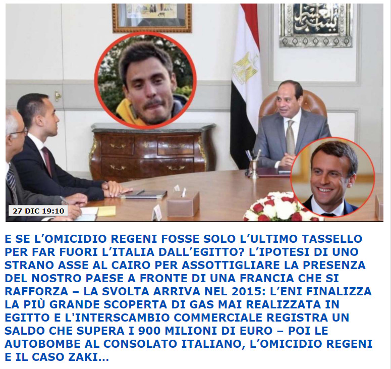 Di Maio era palesemente quello politicamente intelligente nel duo “sovranista” con Salvini. La vera verità su Regeni come agente britannico (forse a sua insaputa…) ha atteso che arrivasse lui al Ministero degli Esteri; uno almeno capace di ascoltare. Non è un caso.