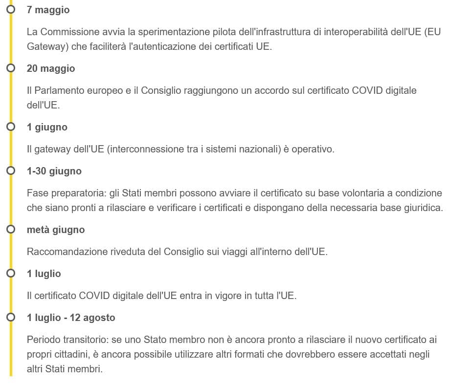Nella seconda immagine la tabella di marcia della commissione europea stipulata nel dicembre 2018 (ultima modifica fine 2019) dove nel 2022 sarebbe stato applicato un certificato per la vaccinazione a livello europeo.