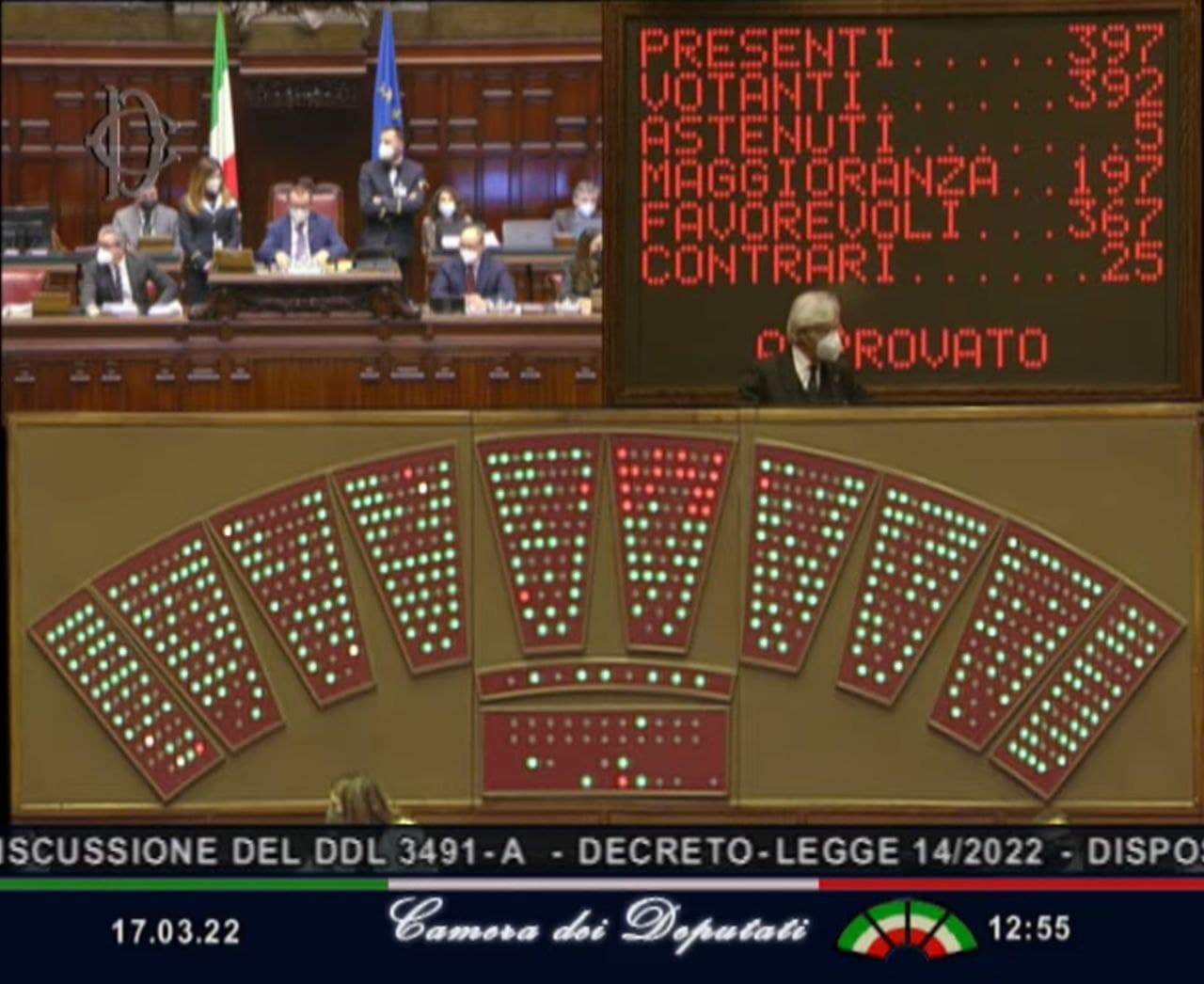 Con 25 voti contrari, 5 astenuti e oltre 200 assenti la Camera dei Deputati italiani vota per l’invio di armi in Ucraina.