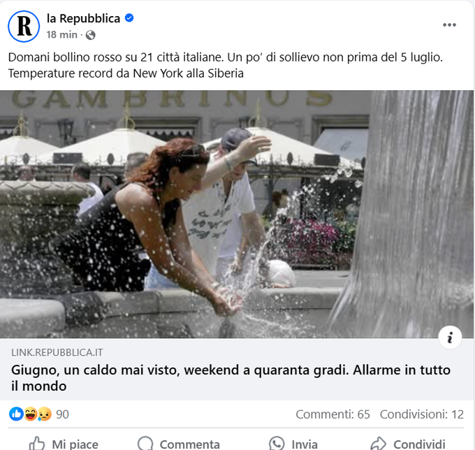 La causa è il Riscaldamento Globale provocato dall’Uomo. Infatti uccide in tutta Italia