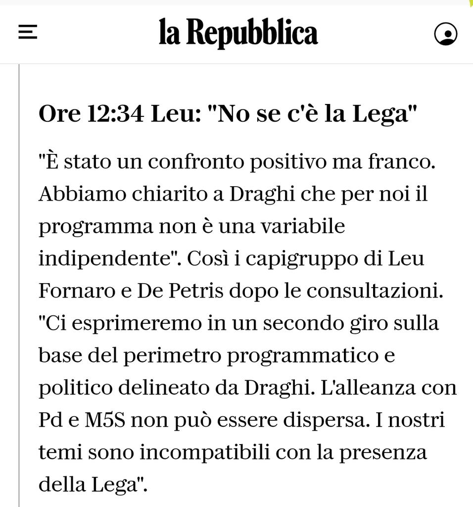 Il terribile fatto è che l’appoggio della lega può essere il bacio della morte, oppure il sostegno su programma di monetizzare il debito, che è quello che hanno sempre detto borghi e bagnai. Ma ve lo vedete il PD accettare, la sinistra sciolta e a pacchetti LGBT e europeismo, votare i provvedimenti di Draghi insieme alla Lega? Su un programma di centro-destra?