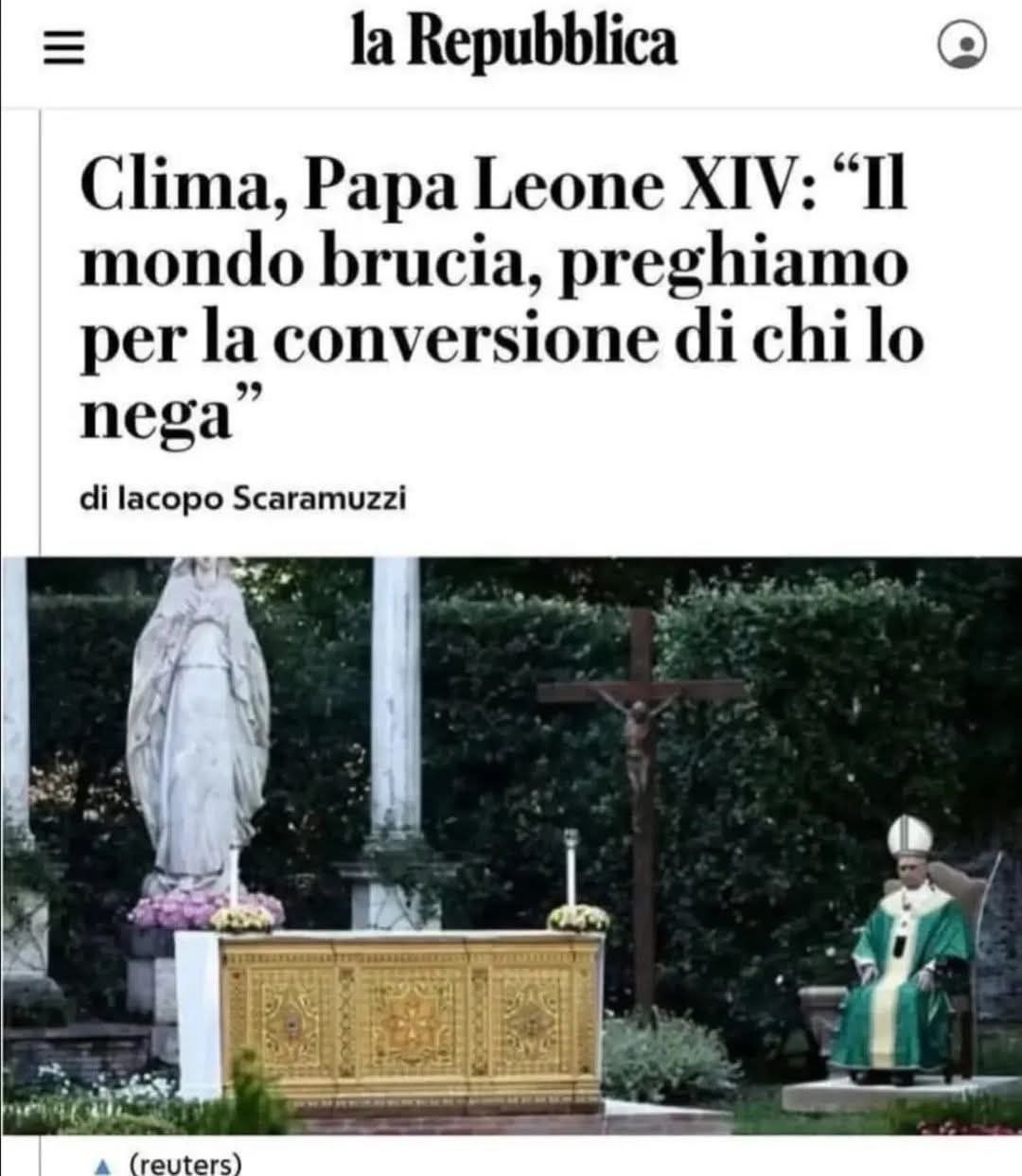 Intendiamoci: che il consumismo, lo spreco, la bulimia di beni materiali indotti dal capitalismo siano anticristiani non ce ne corre. E se il Papa li denuncia fa benissimo. Un cattolico deve essere distaccato dai beni materiali e estraneo al consumo ipertrofico. Ma qui è ben diverso: si auspica una “conversione” che non è a Cristo, ma è all’ideologia ambientalista. Tutta la malizia infatti sta nel termine “conversione”, in una perversa imitatio (l’ennesima) della dottrina di sempre. Prevost parla di “legge naturale” e intende i diritti umani dell’Onu. Parla di “conversione” e intende l’accettazione dell’ambientalismo. Un incubo.