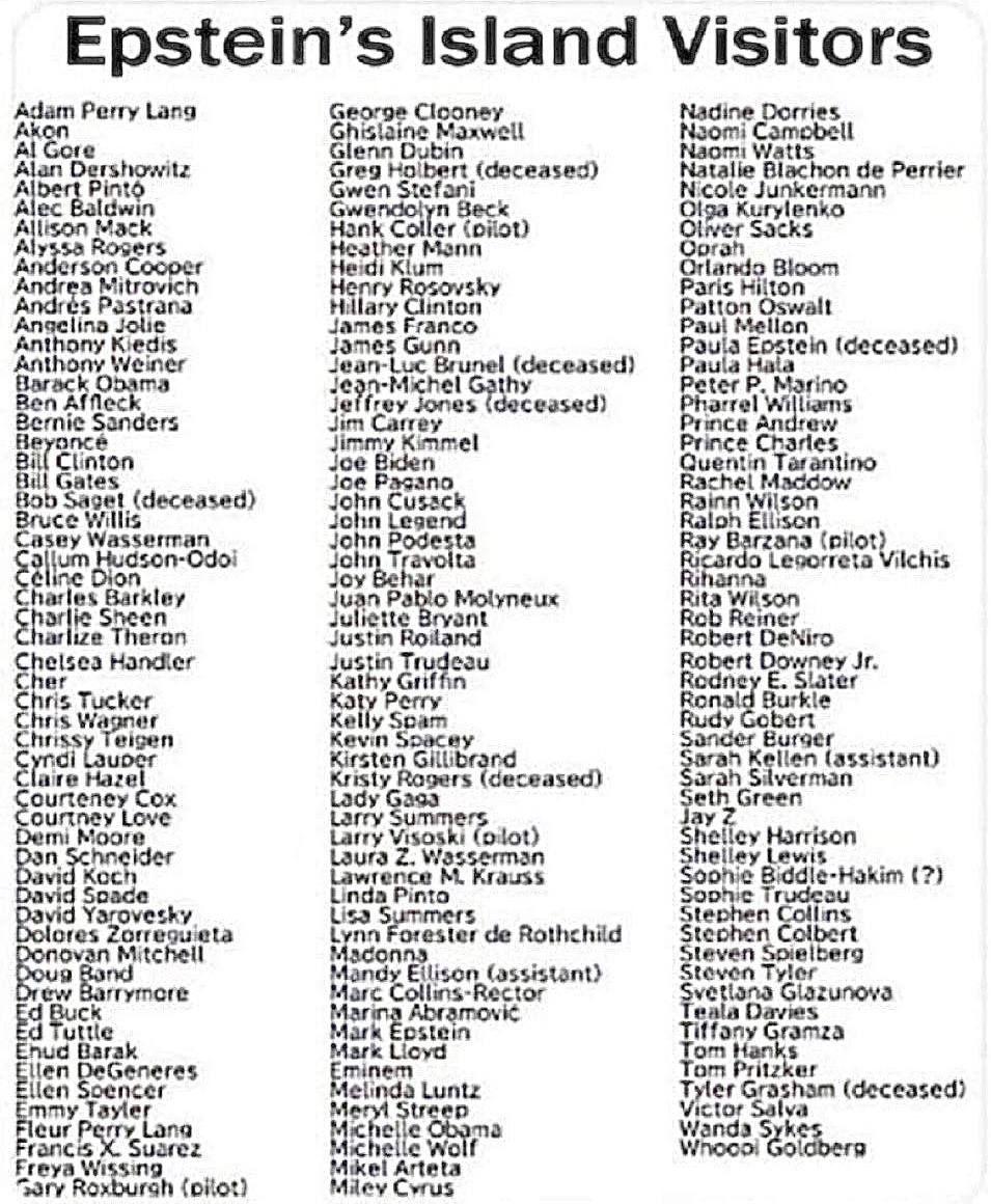 Elon Musk posta la lista dei clienti di Epstein Maurizio Blondet 6 Gennaio 2023 Lo so, in fondo è pettegolezzo, e come elenco nemmeno tanto sorprendente. Ma mi sembra che non manchi nessuno. (seguiranno querele?)
