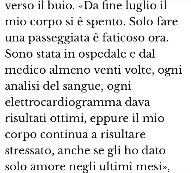 Il riposo forzato cui era stata costretta, ha portato Emilia Brangefalt a fare i conti con una realtà impossibile e una vita stravolta proprio nel pieno della sua crescita professionale. Lo scorso 4 novembre aveva scritto un lungo post su Instagram che riletto oggi ha il sapore della lettera di addio. Un messaggio straziante per una ragazza che inseguiva un sogno ma che non riusciva più nemmeno a camminare per la fatica riscontrata. “Da fine luglio il mio corpo si è spento” è il passaggio più significativo del suo ultimo post. L’atleta spiegava i dettagli del suo problema con l’alta frequenza cardiaca registrata stando semplicemente ferma. “Solo fare una passeggiata è faticoso per me ora. Sono stata in ospedale e dal medico almeno venti volte, ogni analisi del sangue, ogni elettrocardiogramma dava risultati ottimi, eppure il mio corpo continua a risultare stressato, anche se gli ho dato solo amore negli ultimi mesi”.