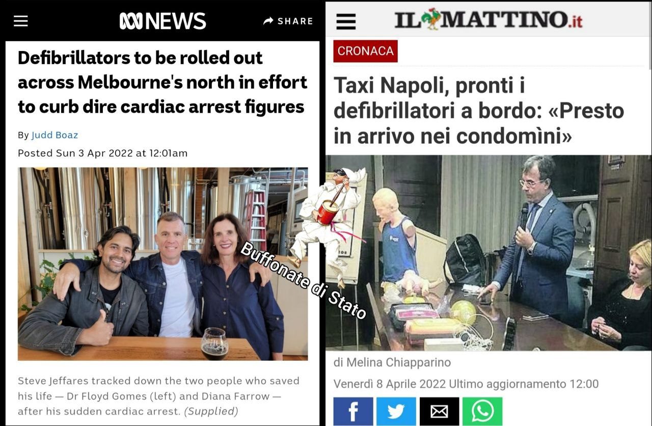 Al via l’installazione di defibrillatori ovunque. A Melbourne ogni 400 metri, a Napoli nei taxi e nei condomini, “per cercare di far calare le terribili cifre di arresti cardiaci”, ammettono in Australia.