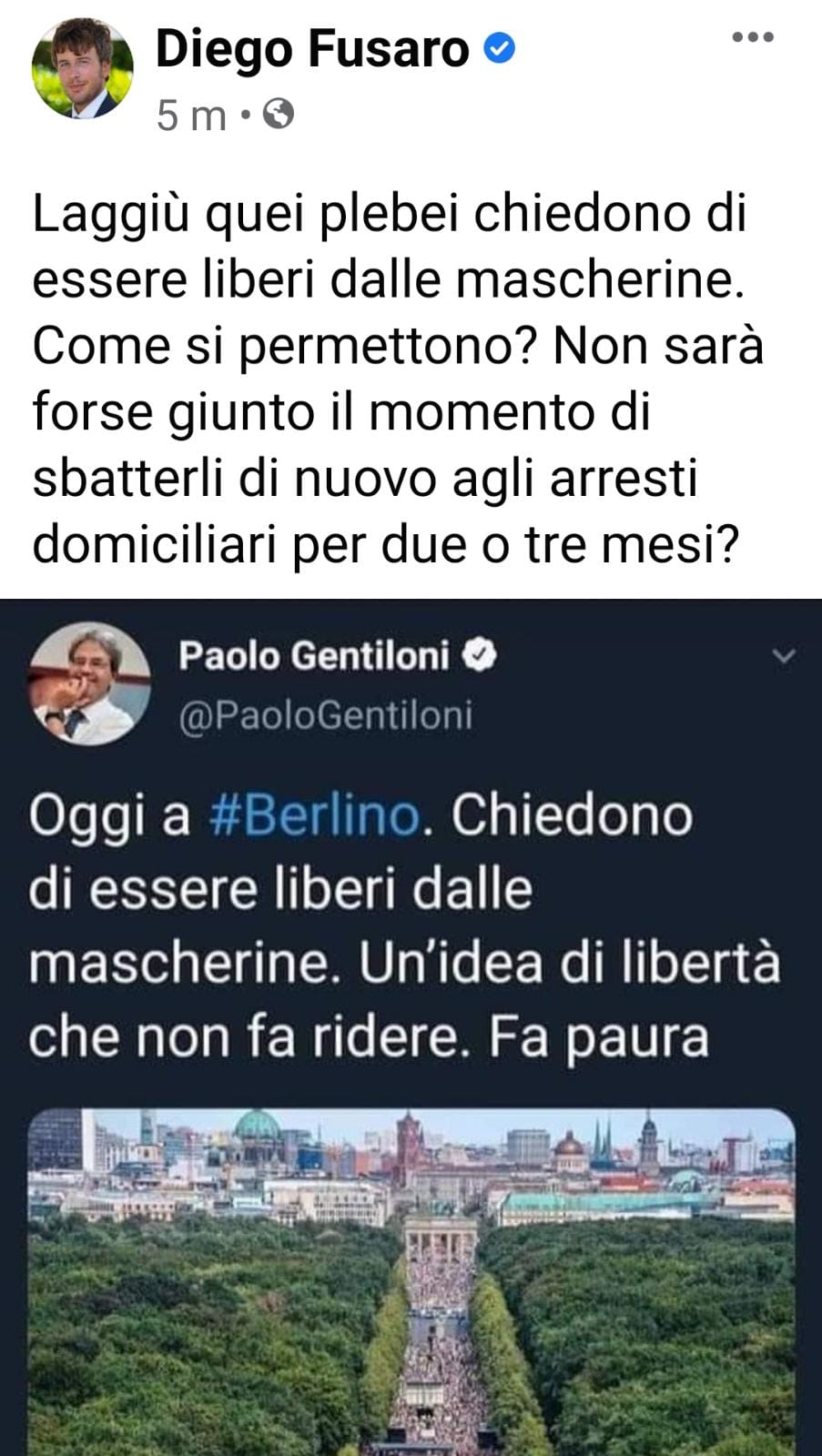 Propaganda è infatti liquidare, denigrare e insultare i manifestanti di una protesta pacifica come nazisti, negazionisti, estremisti di destra, complottisti, no mask (ne parlavo qua 👉🏻 https://enricaperucchietti.blog/2020/05/27/chi-critica-le-mascherine-viene-deriso-come-no-mask/) e quant’altro.