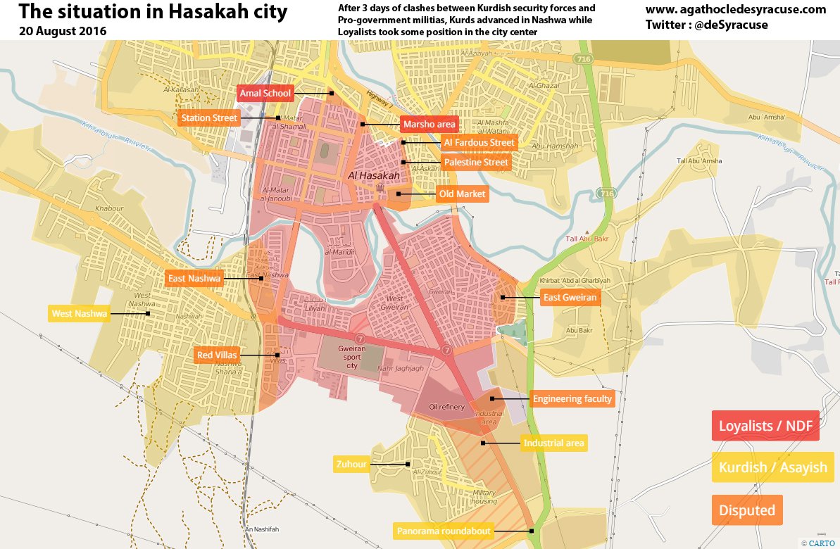 L’antefatto sono i combattimenti in corso nel nord, ad Hasakah, tra le truppe siriane e la milizia curda dell’YPG, spalleggiata da centinaia di commandos americani. Qui è una specie di situazione analoga a quella di Aleppo, ma rovesciata: l’esercito siriano occupa la città, ma è circondato dalle milizie curde. Lo YPG ha intimato ai regolari di abbandonare Hasakah; ma l’esercito di Assad lì è il solo protettore della grossa minoranza cristiana (assira) ed altre, che temono – a ragione – di dover subire la pulizia etnica che i curdi hanno la meglio. Per loro infatti Hasakah deve diventare una delle città del futuro stato curdo, secondo un programma ben collaudato: 1) pulizia etnica delle minoranze,2) indizione di “libere elezioni” con plebiscito per l’appartenenza allo stato curdo prossimo venturo, garantito da Usa e Sion. Non è stata fatta così anche l’unione risorgimentale dell’Italia al regno sabaudo?