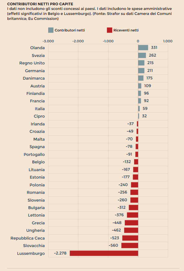 E’ il bello della solidarietà europea: prendere ai poveri per dare al ricchissimo. Ignoro se il privilegio del noto granducato dipenda dal fatto che presidente della Kommisione sia il suo ex primo ministro Juncker (un altro motivo del Brexit) e la sua lunga vicinanza con la tecnocrazia di Bruxelles. I dati qui forniti vengono da uno studio del sito americano Stratfor, che però è stato commissionato dal Parlamento Inglese.