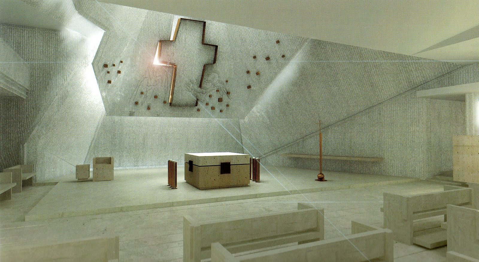(MB. Sono sicuro che, se 500 anni dopo la Grande Distruzione,  dei nuovi archeologi avranno di nuovo la curiosità  di scoprire scavando cosa è accaduto nel nostro e loro passato, di cui avranno perso  qualsiasi fonte scritta  –  noteranno che  avevamo antichi templi, edifici nel cui centro ottico era posto una  piccola scatola dorata, con un sportellino chiuso a chiave.  Constateranno anche che, da un certo momento in poi,   quella  piccola scatola dorata era stata  spostata di  lato, spesso in una cappella laterale, fuori vista.  Nelle chiese di nuova costruzione,  dalle piante più strane ed arbitrarie la cassetta misteriosa, spesso incastrata  in muri di cemento a vista e  priva di ogni ornamento, era  stata appositamente  deviata dall’asse centrale. Gli archeologi di allora raggiungeranno da ciò la conclusione che una religione durata duemila anni, aveva attraversato una grave crisi, irreversibile. Alcuni congettureranno che quello  prima adorato nel centro, era diventato un dio  minore;e si domanderanno:  quale divinità lo aveva rimpiazzato? Quale liturgia si celebrava su quella tavola nuda che aveva sostituito quelle strutture  imponenti e fantasiose di ricchi marmi colorati? Di quale dio gelido si invocavano i favori? Alcuni avanzeranno  l’ipotesi che quella umanità non aveva più  dio, e in quegli edifici adorava l’Uomo. Quasi tutti  postuleranno che ci dovette essere un rapporto di causa ed effetto   tra quell’evidente abbandono della vecchia credenza, e la  guerra atomica che quei popoli scatenarono su se stessi).