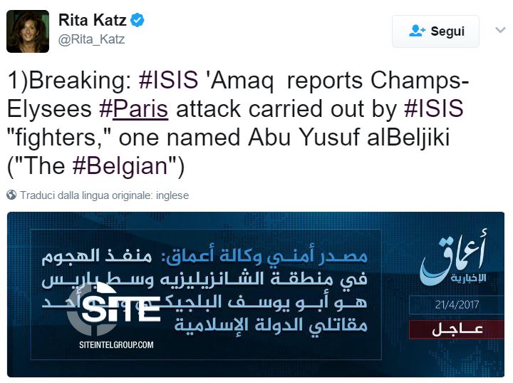 Prevedibile la rivendicazione: Rita Katz, pardon l’ISIS.