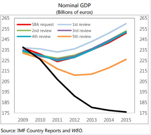 In particolare lo stesso FMI mette in luce come la problematica degli effetti di una stretta fiscale sui saldi della bilancia delle partite correnti è stata completamente sotto stimata, la Grecia ha continuato a perdere la residua competitività ed ora è materialmente nell’impossibilità di ripagare a