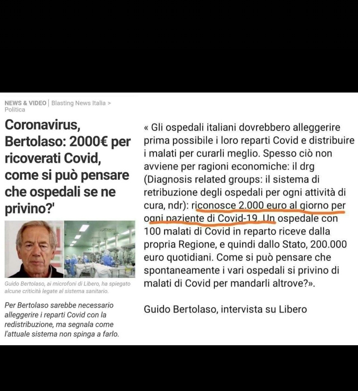 In Francia, il dottor Raoult, insieme alla notifica del divieto di usare la clorochina, ha ricevuto dalla Direction Générale de la Santé una mail, diretta al suo ospedale, nella quale si dice che può usare invece il Redemsivir (della Gilead), e gratis, perché “l’Europa ne ha comprato per un miliardo”. Capito, la clorochina ha il brevetto scaduto da mezzo secolo e costa 6 euro a scatola…Per il professor Raoult, il Redemsivir provoca insufficienze renali. Costa, allo Stato, ossia a noi, 2.100 euro