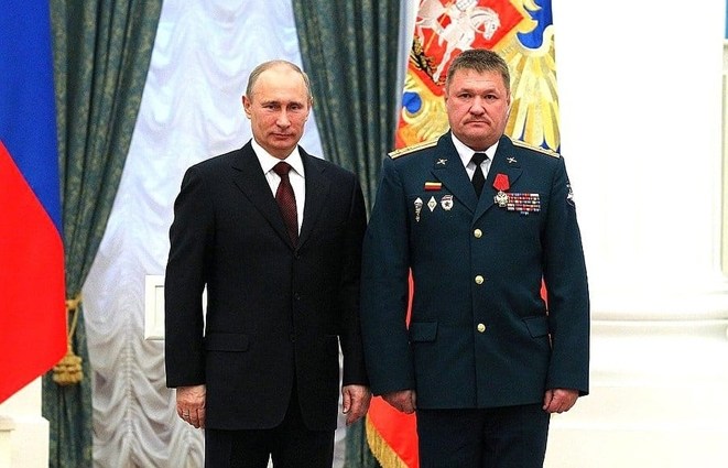 Il generale di corpo d’armata Valeri Asapov, caduto in Siria . Colpito da un tiro unico di mortaio presso Deir Ezzor. Il tiro proveniva da un’area sotto il controllo del cosiddetto Stato Islamico, ma secondo l’armata siriana, sono stati gli americani a fornire le coordinate precise.
