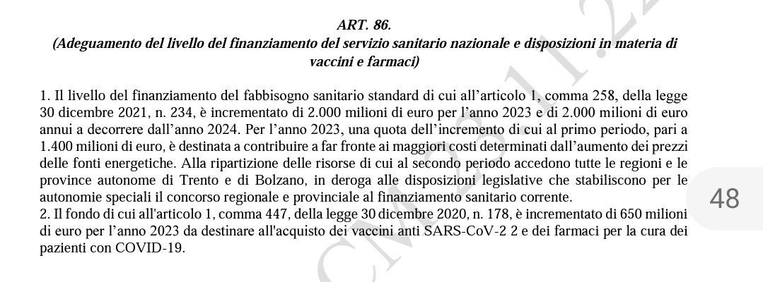 Nell’ultima bozza della legge di bilancio, all’art.86 si stanziano altri 650 milioni per acquistare altri vaccini covid.