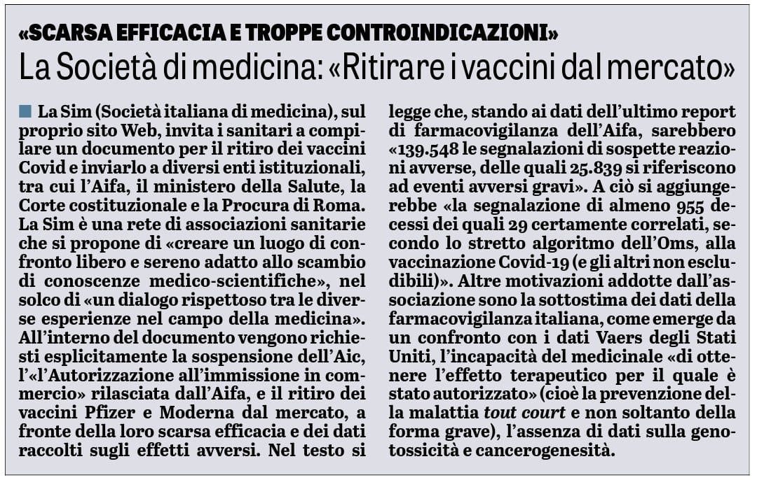 Ma c’è ancora di più, perché la conseguenza naturale della disamina sulle reazioni avverse provocate dai cd vaccini è stata la trasmissione degli atti alla Procura della Repubblica di Roma per la verifica delle eventuali responsabilità penali inerenti la somministrazione di tali preparati vaccinali la cui assunzione, ricordiamo, è stata obbligatoria per tutta la popolazione italiana superiore agli anni 12, con le imposizioni espresse dalla legge oppure a mezzo di obblighi surrettizi attraverso lo strumento dell’odioso super green pass..