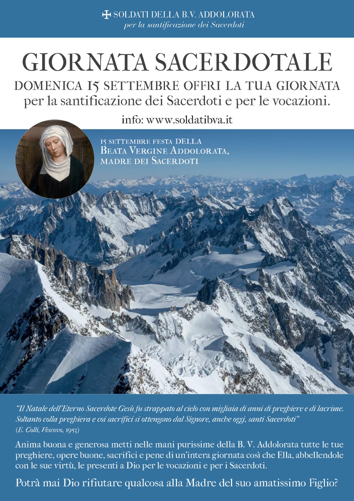 Giornata per i Sacerdoti Maurizio Blondet 6 Settembre 2024 anche quest’anno abbiamo organizzato una giornata di offerta/ preghiere per la santificazione dei sacerdoti. Si chiede la divulgazione