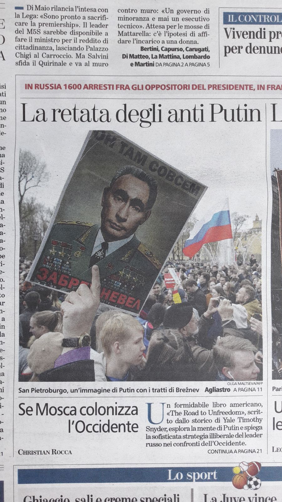 Del resto, la Merkel e la Unione Europea (tramite Mogherini) partecipano da anni a tutte le provocazioni contro la Russia, sottoscrivono tutte le false accuse sul caso Skripal come sugli attacchi chimici di Assad, tengono bordone in Siria al progetto di sostituire il regime laico con uno jihadista wahabita, contribuiscono al riarmo dei baltici e polacchi che ammassano truppe ai confini russi, continuano a sostenere il governo golpista di Kiev e farsi complici dei suoi bombardamenti del Donbass, ad aggravare le sanzioni con la scusa che Mosca ha violato i sacri confini d’Europa annettendosi la Crimea dopo il golpe americano a Kiev (dimenticando che la NATO ha violato i confini della Serbia negli anni ’90 creando uno stato pseudo-indipendente, il Kossovo); hanno ammesso nella UE stati come l’Estonia che pratica l’apartheid della minoranza russofona…insomma vanno come sonnambuli ad un conflitto in cui non abbiamo niente da guadagnare. La Mogherini ha appena trattato da “brutalità e arresti di massa” la polizia russa per la reazione alle manifestazioni di Navalny e dei suoi quattro gatti mobilitati dai servizi occidentali per creare qualche difficoltà mediatica e qualche titolo di giornale all’insediamento di Putin, ha diramato un comunicato sulla “minaccia alle libertà fondamentali di espressione, associazione ed assemblea nella Federazione russa”, nei giorni in cui la UE emana le norme liberticide contro le pretese “fake news”, e la popolarità di Macron è messa in dubbio da ben altre manifestazioni a Parigi.