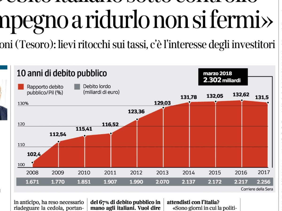 Il debito pubblico: “Il governo giallo-verde lo farà aumentare! Bisogna impedirglielo!”: così esclamano le sinistre che in dieci anni di governo hanno aumentato il debito pubblico così: