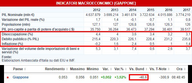 Al che un operatore finanziario domanda: se – come credono i media – c’è una correlazione fra debito grosso e spread, come mai il Giappone che ha un rapporto debito/Pil del 235 per cento, ha uno spread nullo, anzi “NEGATIVO rispetto ai bund tedeschi, e non è sotto la minaccia dei mercati?