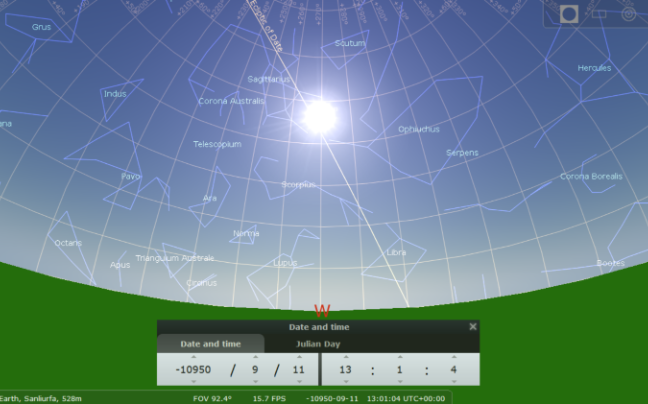 I due studiosi hanno unito geologia, archeologia e paleo-astronomia – esiste sul web un programma gratuito che mostra come si presentava il cielo in passato, anche ai costruttori di Gobekli Tepe 11 mila anni prima di Cristo (http://www.stellarium.org/it/) ed hanno cercato di identificare le costellazioni descritte dagli “animali” sul pilastro 43. Supposto che lo scorpione rappresentasse proprio l’attuale costellazione dello Scorpione, hanno ricostruito la posizione degli altri “animali” (costellazioni) vicini in nei giorni della tragedia più grande di quella umanità, dove certamente migliaia di esseri umani furono spazzati via.