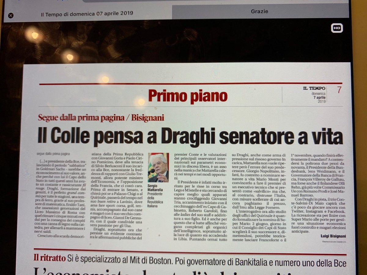A) “Mattarella pensa di nominare Draghi senatore a vita”
