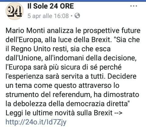 La nomina di Draghi senatore a vita non è solo una ovvia replica del golpe di Napolitano che portò al governo Mario Monti e ci è costato la istruzione dell’economia altri 240 miliardi di debito pubblico. Secondo me, Draghi è tanto favorito dai media e dai poteri, che gli potrebbero far vincere le elezioni facilmente – come hanno fatto per Macron. E’ proprio che non vogliono: nella nuova fase di presa totale del potere, dovuta alla necessità di tamponare il BRexit e i “sovranisti”l’eurocrazia vuole sottolineare il suo disprezzo radicale per qualunque forma, per quanto ADDOMESTICATA, di democrazia. Vuol mostrare che il voto popolare non dà alcuna legittimazione per governare, nella nuova fase. Se rileggete il discorso di Draghi a Bologna: diceva proprio questo: la sovranità non esiste, esiste la forza e il potere. Ma anche Juncker l’ha sempre detto: non esiste voto democratico che valga a cambiare i trattati UE.