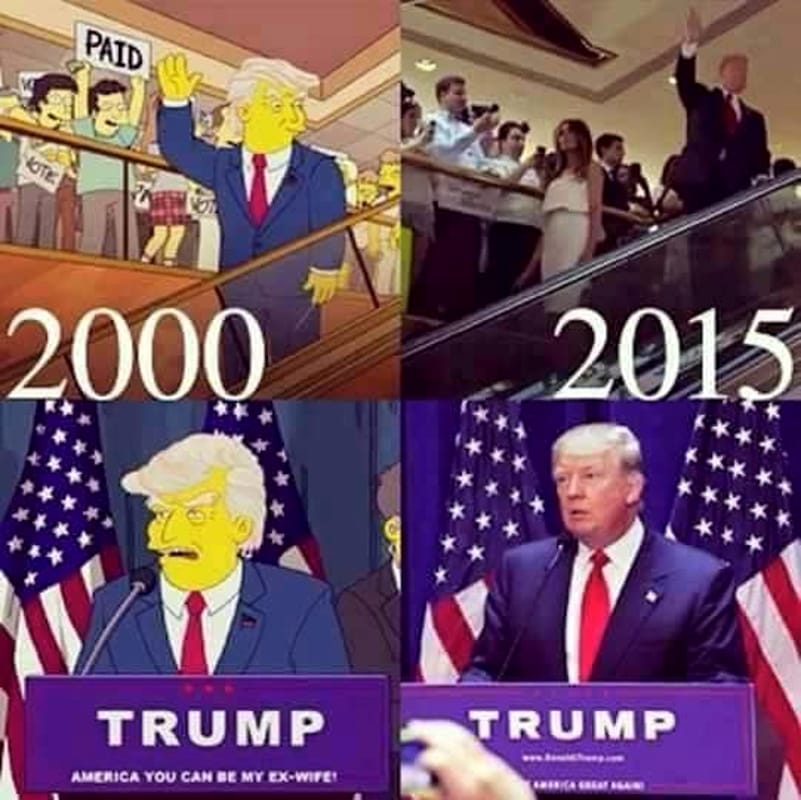 Qualche mio lettore ha visto la puntata dei Simpson dove appare questa circostanza? Quando è stato? In quale contesto? Perché come ricorderete ci sono state anticipazioni profetiche degli autori della molto sofisticata e intelligente serie di comics.