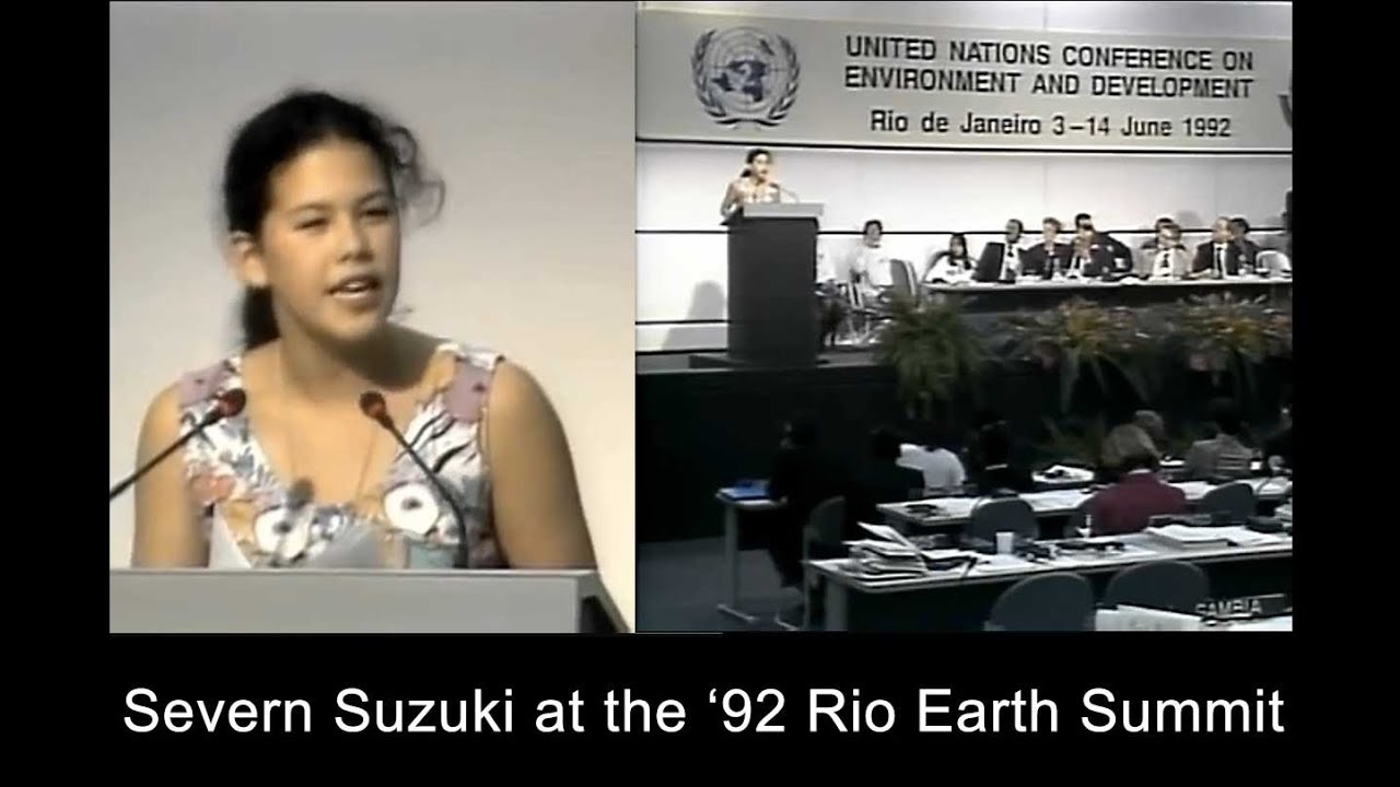 E’ di quell’epoca (1992) la salita alla tribuna del Summit di Rio sul Clima della pre-Greta, la figlia dodicenne di un celebre ambientalista canadese e personalità televisiva, David Suzuki.