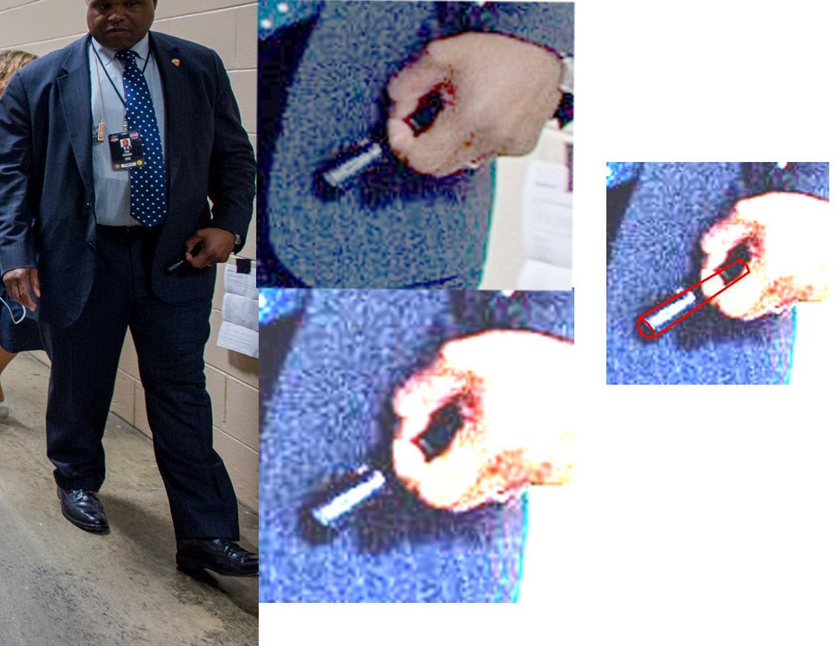 le ha messo la mano sulla spalla e le ha detto (vedi il video) “keep talking”. E’ stato detto che erano uno dei Servizi Segreti, ma quelli dei Secret Service non possono toccare il loro protetto a meno di un attentato violento e certamente non possono dire loro quello che devono fare. La Clinton si e’ ripresa e ha detto in tono semisterico a voce molto alta, “here we are, I keep talking…