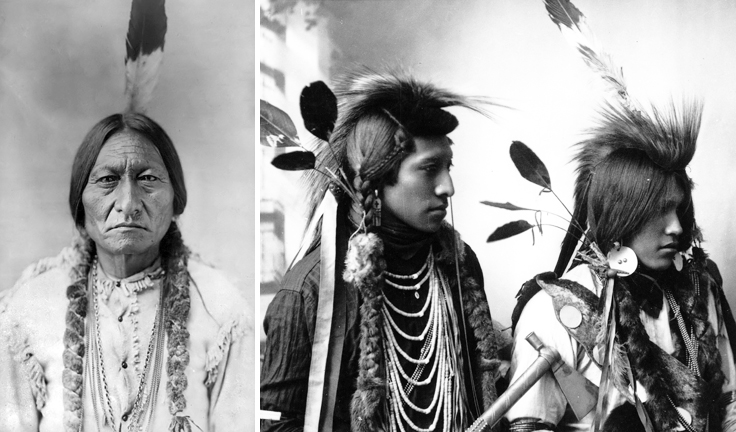 I nativi americani sono un altro esempio.  Dalle trecce, alla rasatura a cresta   agli ornamenti di piume fastosi  di gala, è tutta una galleria  che testimonia l’importanza  della chioma fra i supposti “selvaggi”.  Mai e poi mai un guerriero si sarebbe presentato con la testa incolta che nel film vengono attribuiti ai romani.