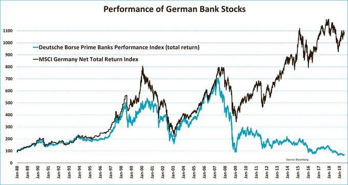 Quei tedeschi che – come ha mostrato uno studio recente del FMI – hanno investito all’estero il loro surplus invece che nell’economia interna ed europea (congelata dalla “loro” austerità) cercando alti rendimenti: hanno ottenuto perdite secche invece, in media del 2% nel quinquennio 2011-2017. Come la Deutsche Bank che si piccò di fare la grande speculazione finanziaria, e a Wall Street (che gli rifilava qualunque “prodotto finanziario creativo” o derivato ) chiamavano gli idioti di Dusseldorf. I tedeschi avrebbero fatto meglio a investire di più, del loro grande eccedente, in patria: gli avrebbe reso di più e fatto meglio all’economia reale.
