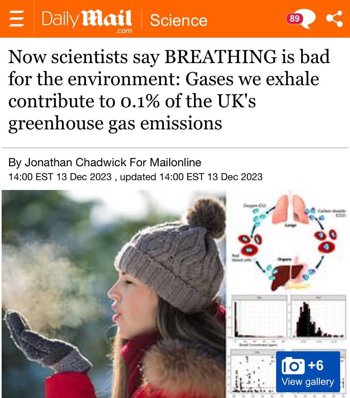 Scienziati: «Respirare fa Male all’ambiente. Vivendo, emettete gas-serra»