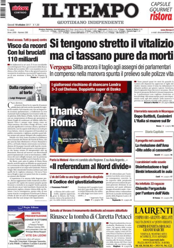 Non ho alcuna voglia di spendere sforzi d’intelligenza su Ignazio Visco, il governatore di Bankitalia “attaccato da Renzi”. Sarà sicuramente riconfermato. Abbiamo visto quanti difensori ha: da Mattarella a Napolitano, da Padoan a Draghi a Ferruccio De Bortoli, financo Scalfari che di solito sta con Renzi, stavolta ha consigliato Renzi di farsi visitare da uno psichiatra. La Cupola al completo. Ovviamente il Nano che ha insegnato il Bidet agli arabi s’è subito accodato alla Cupola, come ha fatto sempre. “Da Via Nazionale hanno notato che Forza Italia ha smesso di attaccare il governatore e ora lo sostiene”. Notano con soddisfazione: i voti di Nano-Bidet per la riconferma sono sicuri.