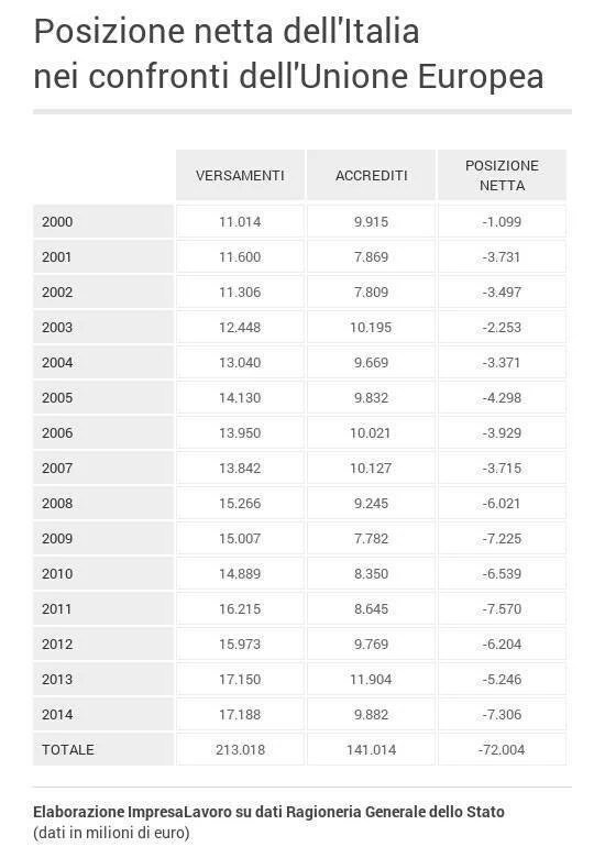 “La contribuzione dell’Italia al Meccanismo di Stabilità, lo scudo di salvataggio della zona euro, calcolata all’interno del deficit massimo consentito. L’accettazione di una modalità di risoluzione delle banche (il bail-in) che lascia milioni di risparmiatori italiani senza la protezione della garanzia sui loro depositi. E peggio di tutto, l’accettazione nel 2012 del fiscal compact, che obbliga l’Italia ad avere bilanci senza deficit. Se i precedenti capi di governo fossero stati meno arrendevoli, la reazione anti-europea sarebbe stata meno dura”.