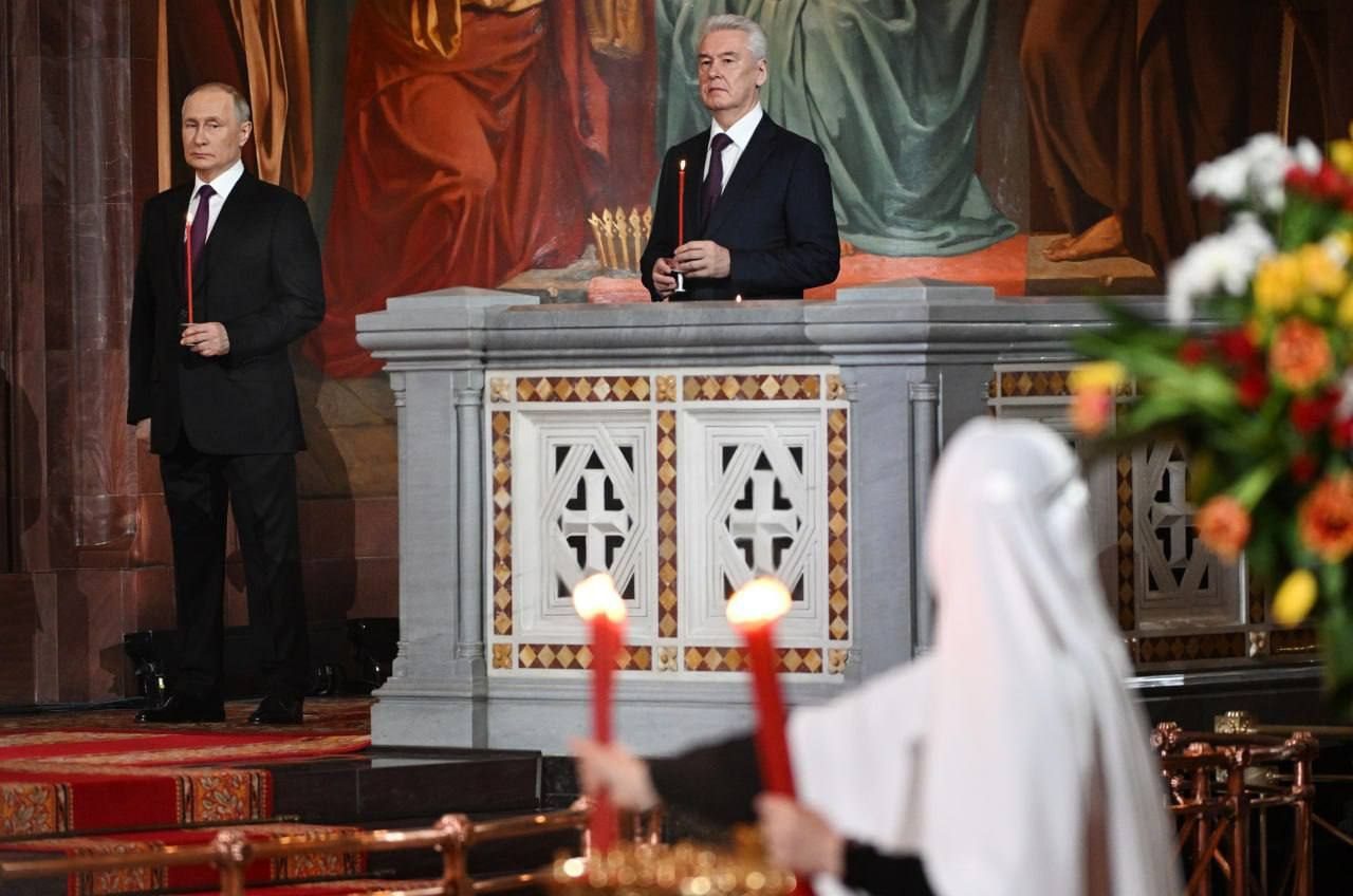 Putin ha passato la notte di Pasqua nella chiesa di Cristo Salvatore a Mosca.