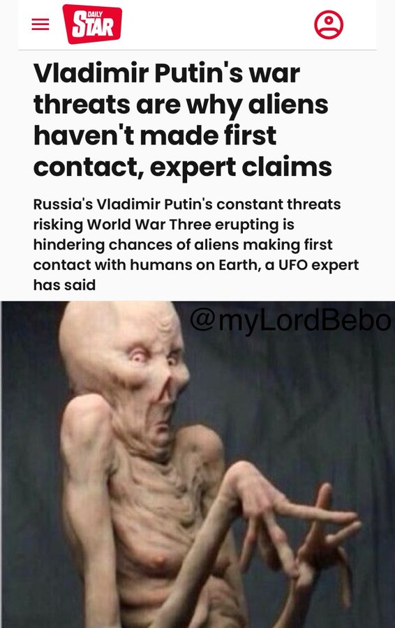 A quanto pare gli alieni volevano entrare in contatto con noi… ma hanno detto “no, non finché Putin crea problemi” e sono volati via. Bisogna amare la propaganda britannica