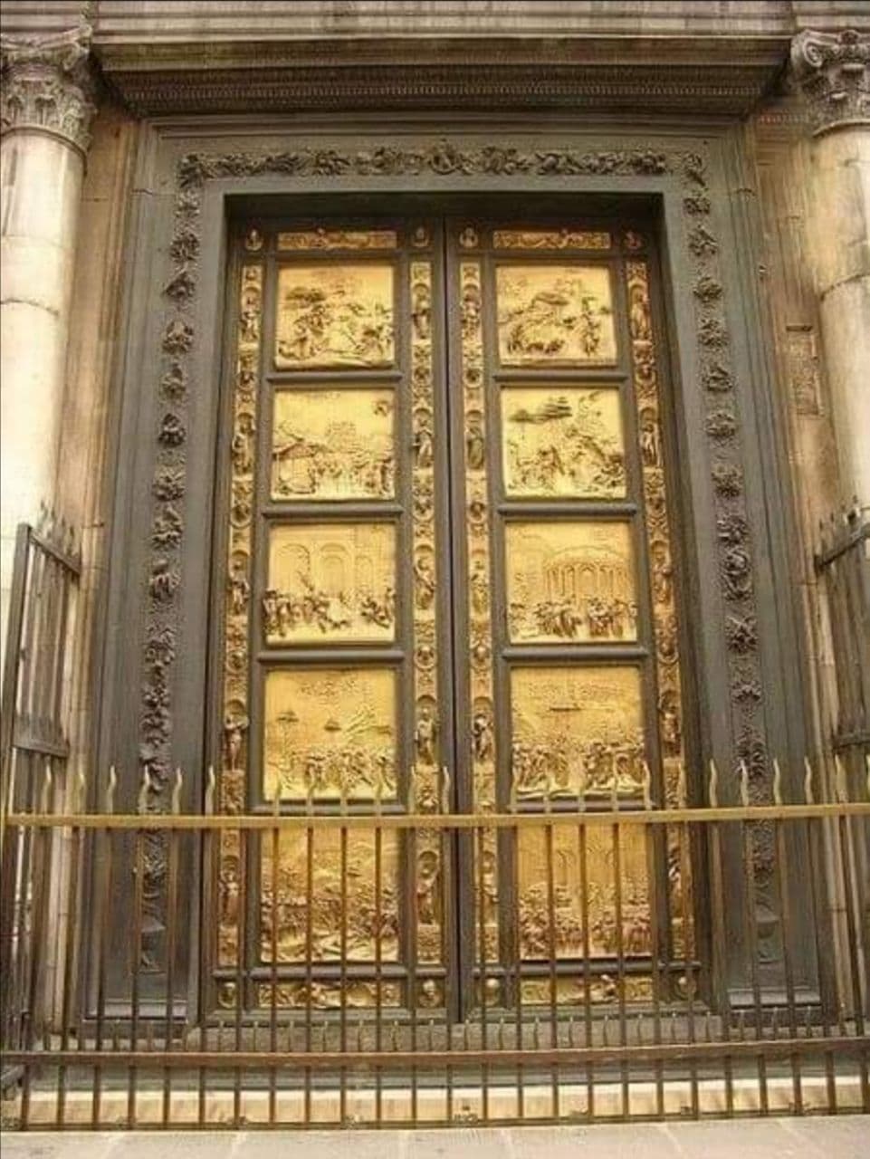 Fate circolare e condividete nei vostri post questa immagine della Porta del Paradiso del Battistero di Firenze, un capolavoro del Rinascimento realizzato dall’iniziato orfico e neoplatonico Lorenzo Ghiberti tra il 1425 e il 1452, carico di simbologie esoteriche altamente positive. Contrastiamo quella mostruosa eggregore che sta pervadendo l’Italia e che sta portando a Roma la Porta dell’Inferno di Rodin!