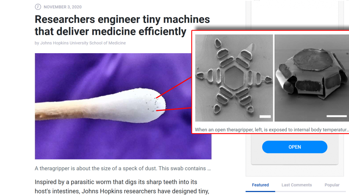 Vedete – faranno notare gli smascheratori di bufale – che l’articolo parla di impianti per il tratto intestinale, mica di inserire questi micro-cose nel cervello, come hanno detto i complottisti. No no, qui la fonte è una pubblicazione scientifica: