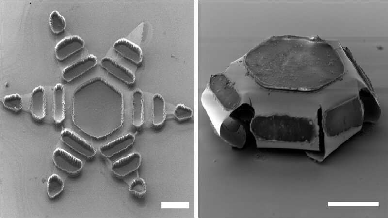 Realizzati in metallo e in una pellicola sottile che cambia forma e rivestiti in una paraffina termosensibile, i “theragrippers”, ciascuno delle dimensioni approssimative di un granello di polvere, possono potenzialmente trasportare qualsiasi farmaco e rilasciarlo gradualmente nel corpo.