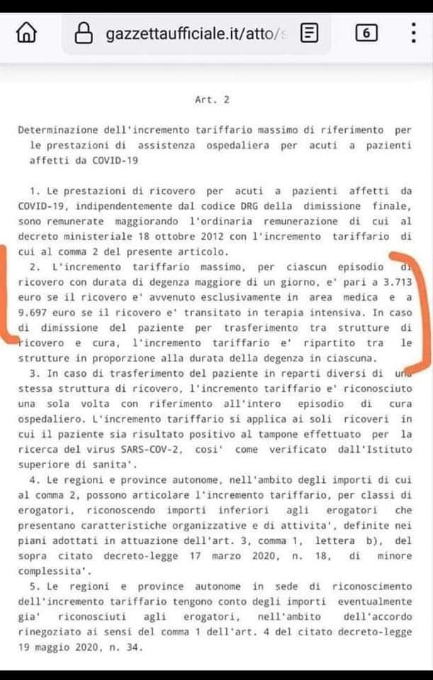 Stiamo parlando di cifre astronomiche per ogni paziente Covid ricoverato in reparto o in terapia intensiva.