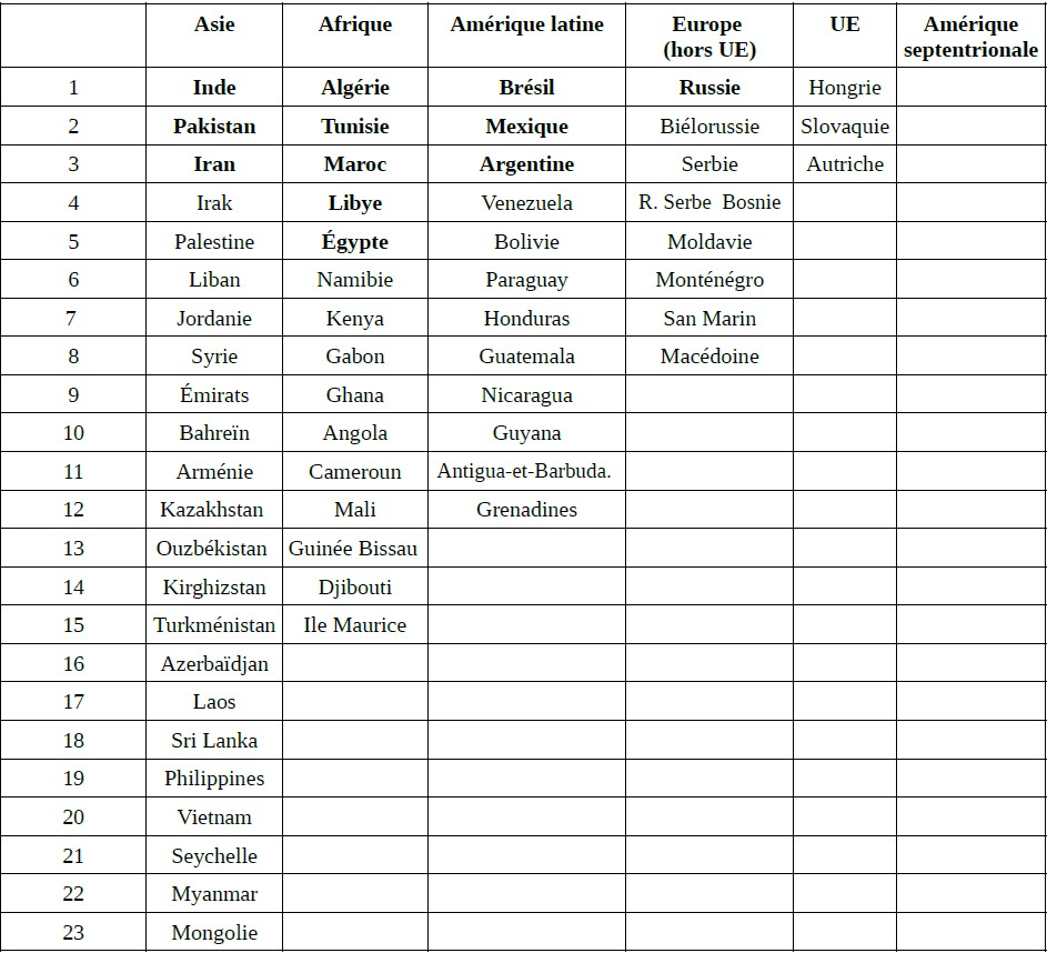 Il vaccino russo Sputnik, il secondo vaccino più utilizzato al mondo: è già utilizzato in 60 paesi che rappresentano più di 3 miliardi di abitanti. Ecco l’elenco esaustivo al 14 aprile 2021 nella tabella sottostante. Poiché l’approvazione dello Sputnik V è in fase di esame in altri paesi, questo elenco si evolverà.