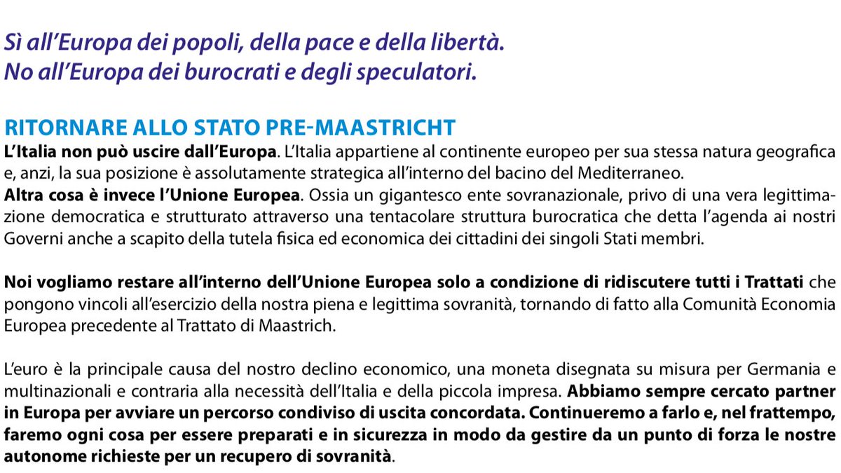 QUi sotto: il programma della Lega sull’Europa. Cosa trova “ingannevole”, presidente?