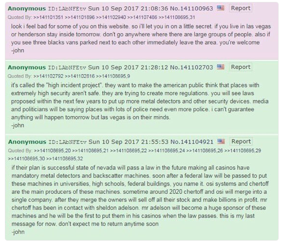 “Si chiama “progetto alto incidente”. Vogliono che il pubblico americano pensi che posti con altissimo livello di sicurezza non sono sicuri. Stanno cercando di instaurare più regolamenti. Vedrete nuove leggi proposte nei prossimi anni per installare sempre più metal detector e altri apparati. I media e i politici diranno che i posti con tanta polizia richiedono ancora più polizia. Non posso garantire che accada domani ma hanno in mente Las Vegas.