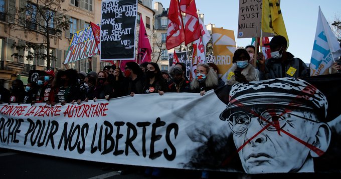 « Suicidez-vous ! » crient un groupe face aux forces de l’ordre qui doivent reculer face aux projectiles. #MarcheDesLibertes pic.twitter.com/os4zduGqdP