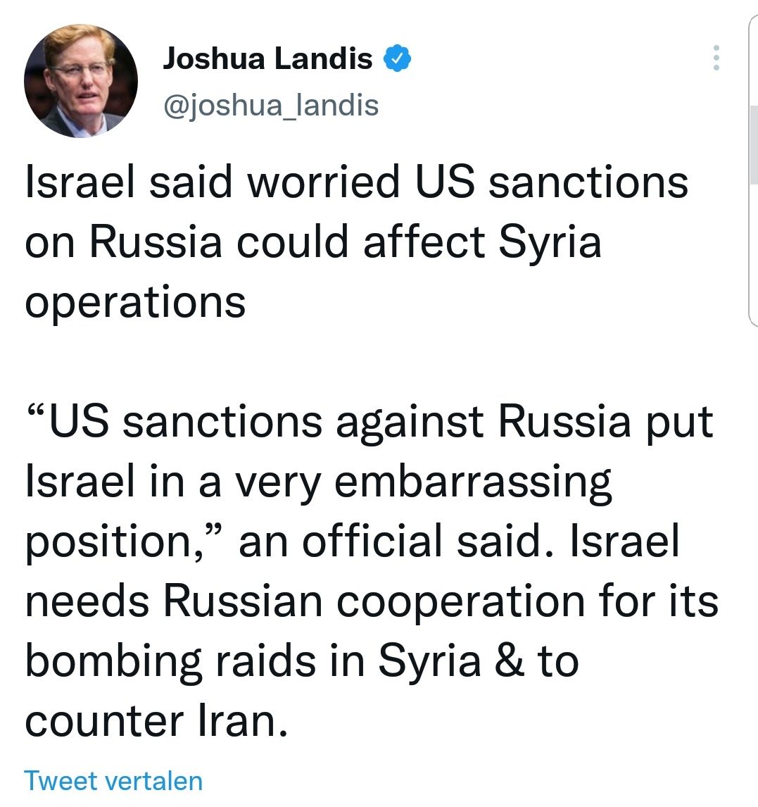 La sanzioni Usa contro la Russia mettono Israele in una posizione imbarazzante”, dice un dirigente. Israele ha bisogno della cooperazione russa per i suoi raids di bombardamento in Siria e per contrare l’Iran.