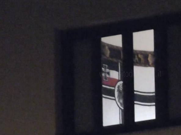 Una bandiera, la bandiera tedesca in uso in varie varianti dal 1867 dell’impero del Kaiser fino al 1918 con i colori della Prussia e della Lega Anseatica, l’aquila imperiale e la croce dei cavalieri teutonici, è visibile in una stanza della caserma Baldissera – sede tra l’altro del VI Battaglione Mobile Carabinieri- a Firenze. Sembra si tratti di un alloggio di servizio.