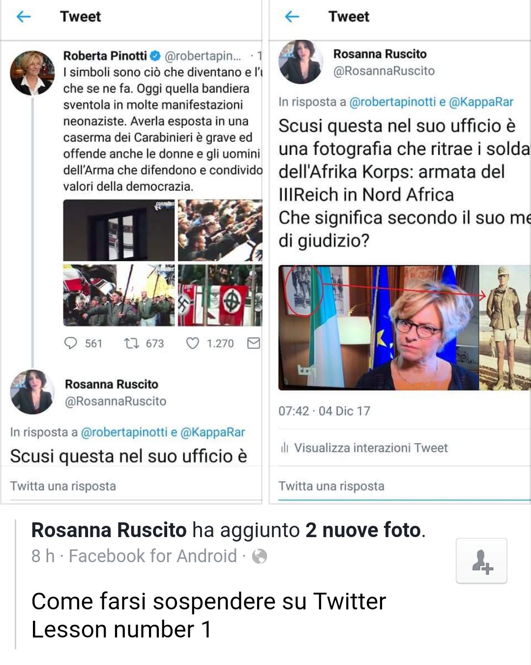 Le sue urla scandalizzate dinanzi ad una bandiera della Marina Prussiana vista appesa in un alloggio privato di un carabiniere, da lei erroneamente scambiata per un simbolo nazista, hanno messo in moto giornalisti prezzolati, generali azzerbinati e solerti procuratori militari. E durante tutto sto casino, non c’è stata nessuna anima pia che la tirasse per la giacchetta e le impedisse di fare una figura escrementina di proporzioni immani. Quando poi gli odiati social network hanno evidenziato la “bufala”, questa benedetta donna invece di ritirarsi con la coda tra le gambe che fa? Zitta, zitta va sul suo profilo fb e modifica la parola “nazifascista” con “neofascista”.