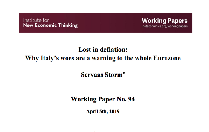 E’ passata quasi inosservata in Italia l’uscita di un paper (PDF integrale qui), a firma dell’economista Servaas Storm, per conto dell’Institute of New Economic Thinking, un think tank newyorchese in cui George Soros ha raccolto, con un iniziale finanziamento a fondo perduto, una autentica seleçao di pensatori autorevoli ma potenzialmente “eretici” rispetto alla linea oggi dominante in materia economica.